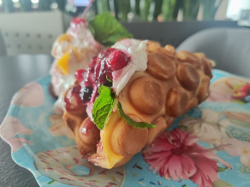 Гонконгские бабл-вафли снова покоряют TikTok. Они появились не только в модных кафе, но и в обычных сетевых магазинах. В кулинарии ProStore, который находится пр-те Дзержинского, 126 мы купили пирожное бабл-вафля тропик-клубника и со вкусом малина-голубика. Стоит лакомство 8,99 рубля за штуку, вес — 300 граммов.