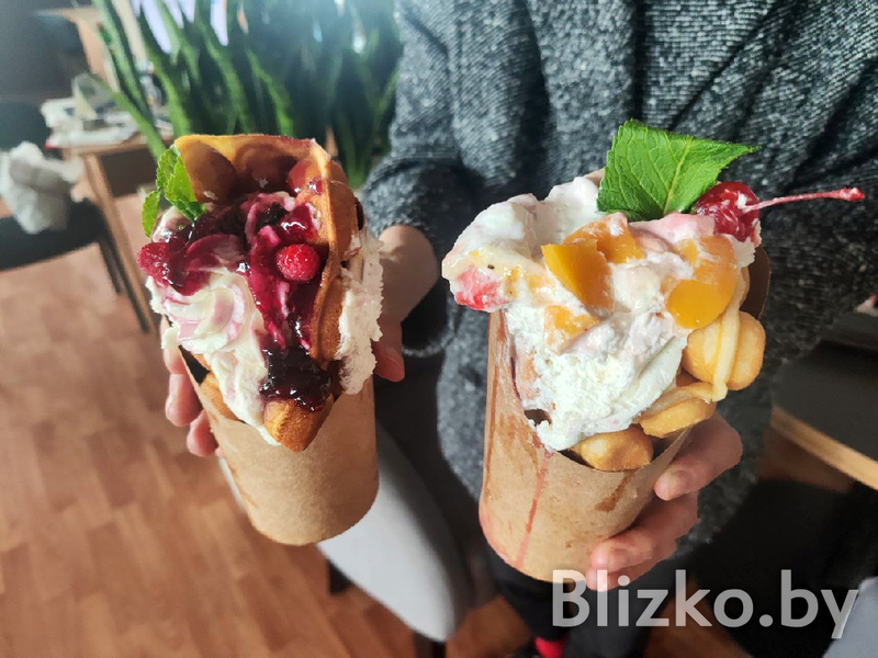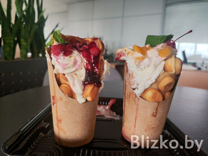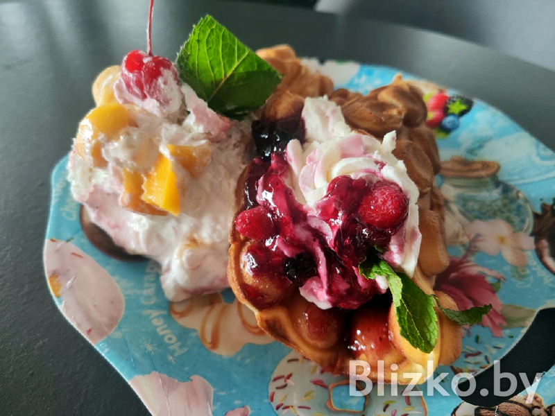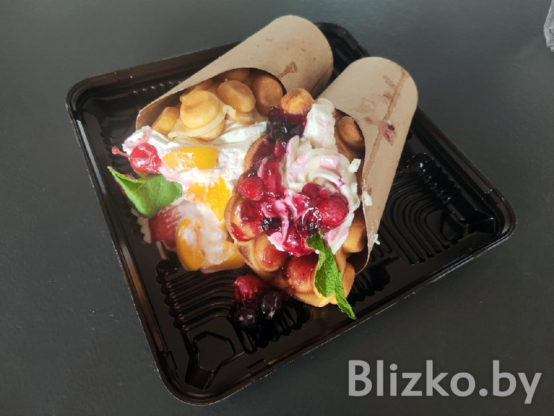 - Фруктов очень мало, только снаружи. Внутри какой-то джем есть, но так себе. Крем, как взбитые сливки, что вкусно. Вафля мне напоминала бисквит.