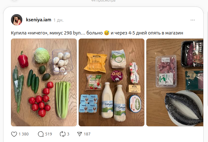 Максимум голосов набрал комментарий о том, что купленные продукты — это база, которая должна быть на столе у каждого белоруса.