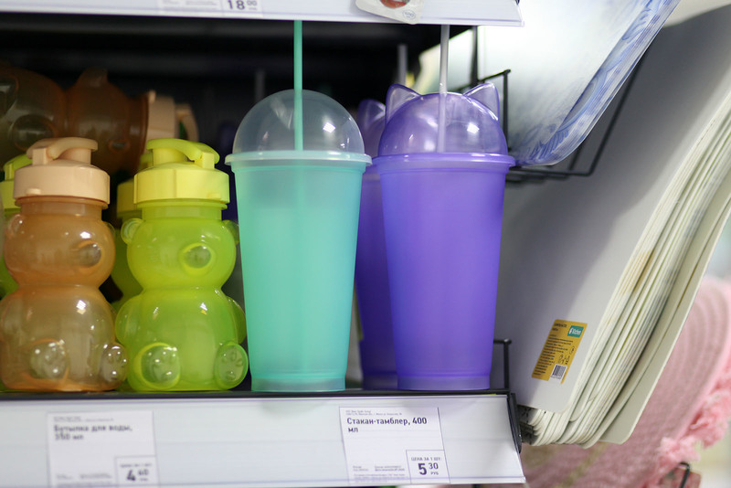 Высокий яркий стакан с трубочкой — для прохладительных напитков с собой. Закрывается крышкой с милыми ушками.