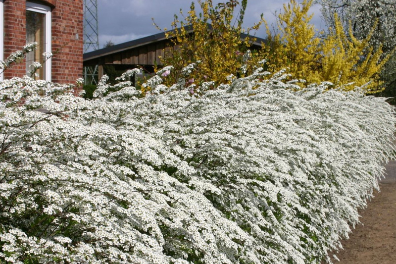 Отличный выбор для низкой аккуратной изгороди. Весной кусты усыпаны каскадами белых цветов с медовым ароматом. После цветения побеги можно немного укоротить.