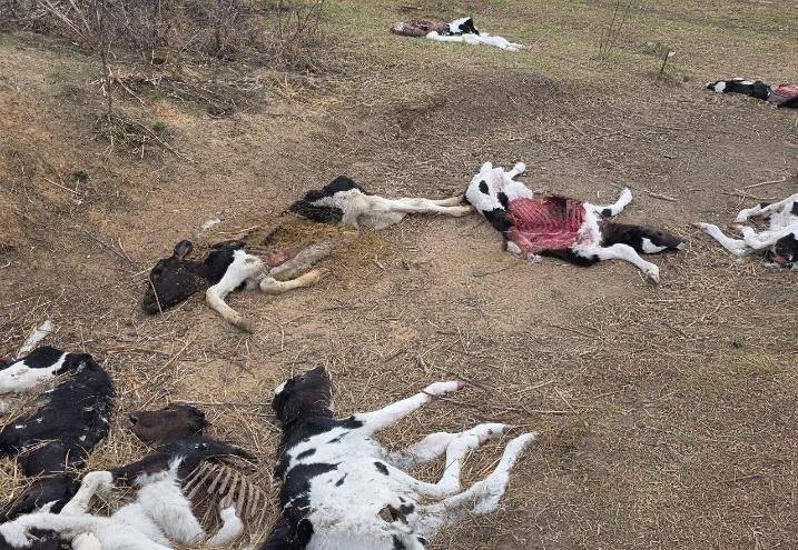 Александр Лукашенко показал журналистам фото, которое ранее в ходе его рабочей поездки на Гомельщину, ему передал КГК. На кадрах − погибшие телята. Как пишет «Пул Первого», опубликовавший снимки: «Впечатлительным лучше не смотреть».