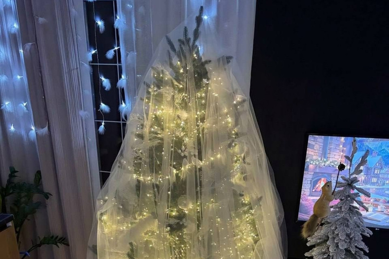 Модницы украшают елку украшают минимальным количеством гирлянд и игрушек, а сверху накрывают новогоднее дерево фатой или полупрозрачной белой тюлью. Получается импровизированная «елка-невеста», которая очень нравится пользователям сети.