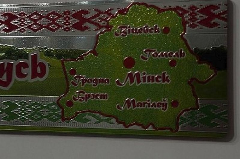 На изображении можно увидеть сувенир с ошибками. А именно магнит с картой Беларуси, где областные центры находятся не на своих местах.