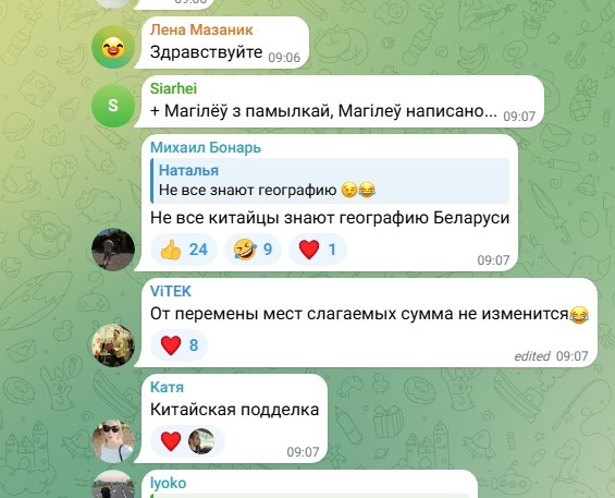 «Не все китайцы знают географию Беларуси», — комментируют некоторые пользователи.