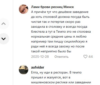 «Мне стало интересно, с каких пор «Темпо» стал дешевой забегаловкой? Я где-то пропустил момент, когда всей стране раздавали деньги и я 1 пропустил? В моем понимании, дешевая забегаловка — это когда обычный человек может позволить себе там постоянно питаться, как в столовой, без ущерба своим финансам. Средний чек в темпо ~ 15-20 $, даже если есть там 1 раз в день на протяжении месяца, то выходит 450-600 долларов. Так вот, если это дешевый сегмент, то что тогда хотя бы средний?» — Возмущаются в ответ пользователи.