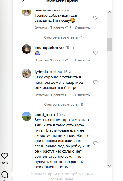 Впрочем, у любой медали есть две стороны. «Все, кто пишет про экологию, вникните в тему хоть чуть-чуть. Пластиковые елки не экологичны ни капли. Живые ели и сосны высаживают специально под вырубку к Новому году, они растут несколько лет, соответственно земля не пустует, биотоп сохранен, газообмен в норме», — отвечают им.