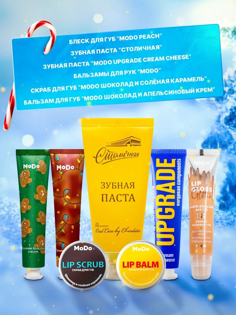 Но это еще не все. В рюкзаке Модошика лежат несколько средств гигиены и ухода за телом — крема для рук, скрабы и бальзамы для губ и новинка сезона — зубная паста «Столичная».