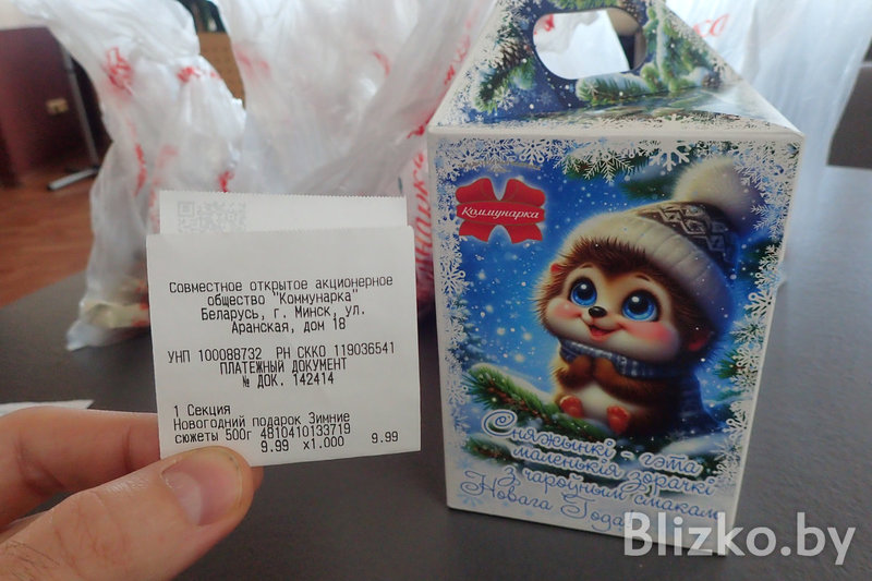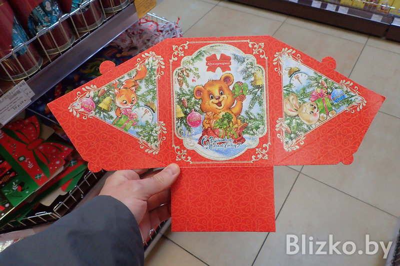 В один из предрождественских дней мы пришли в фирменный магазин «Коммунарка» и взяли небольшой подарочный наборчик массой в 500 граммов. Заплатили мы за него 9,99 рубля. Притом товар шел по акционной цене, а без скидки коробочка стоила бы 14 рублей.