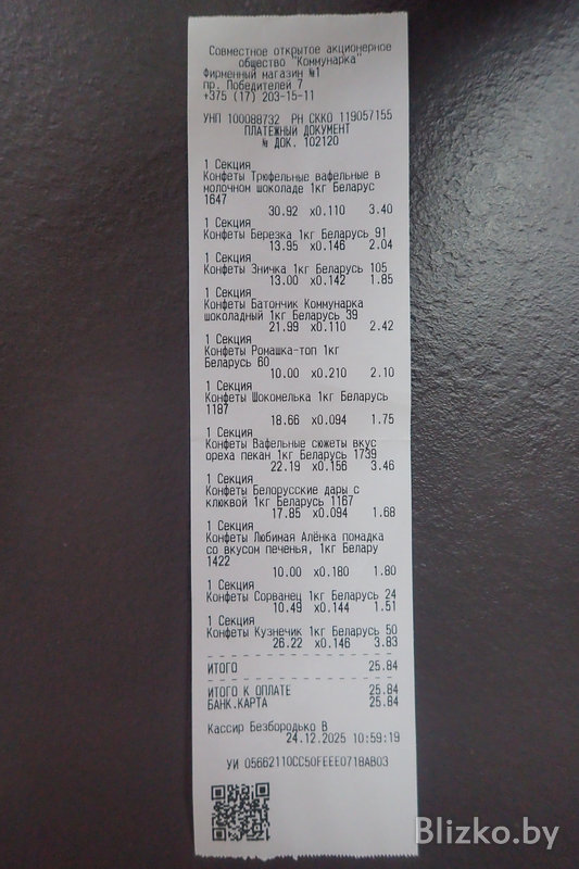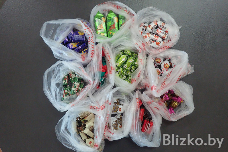 Также отметим, что конфеты кассир взвешивает вместе с пакетами, и эти лишние граммульки, помноженные на наши 11 пакетов, могут привести к погрешности.