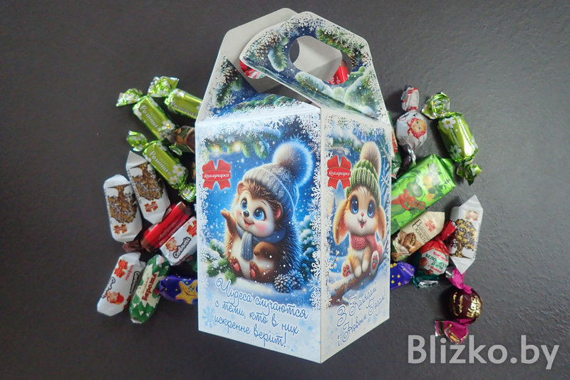 Кстати, и самого подарочного набора в сборе в таком же оформлении тоже не нашлось. Но есть похожая картонная коробка, она стоит 1,86 рубля. Будем считать, что наша, с ежиком и белочкой, стоила бы столько же.