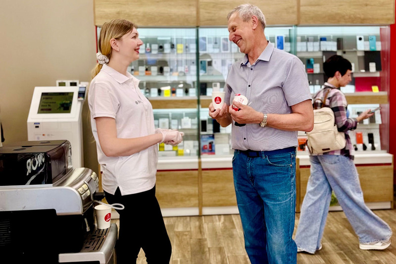 27 июня, в день рождения МТС, праздничное настроение царило и в главных салонах МТС в областных центрах. Гостей угощали ароматным кофе от профессиональных бариста и фирменными пряниками.
