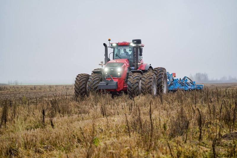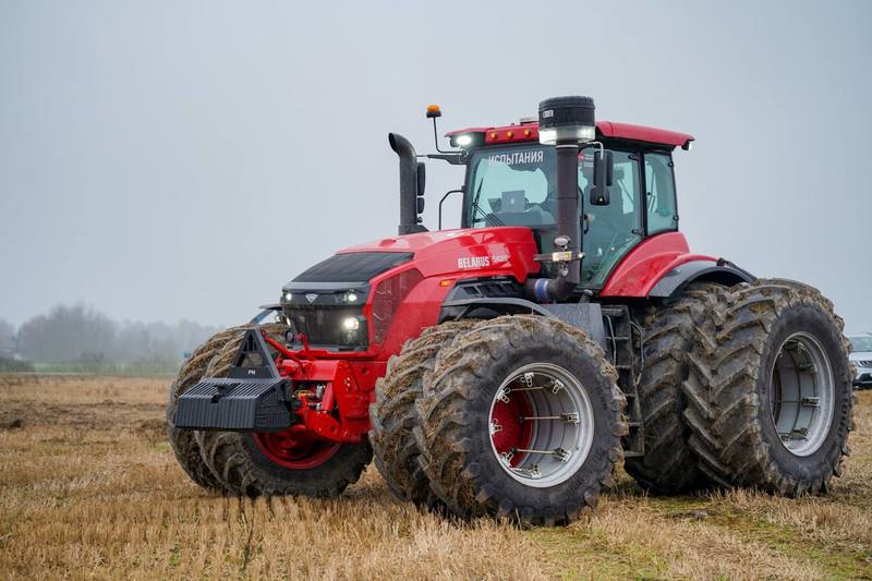 AV.by напоминает, что это трактор общего назначения тягового класса 8 с колёсной формулой 4×4. Двигатель — Weichai WP14Т мощностью 542 л.с., который соответствует экологическому стандарту Stage IIIA.
