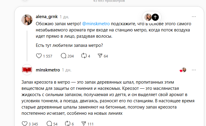 В записи она тегнула представителей столичной подземки, которые ответили на этот пост в комментариях ветки. Вот что они написали.