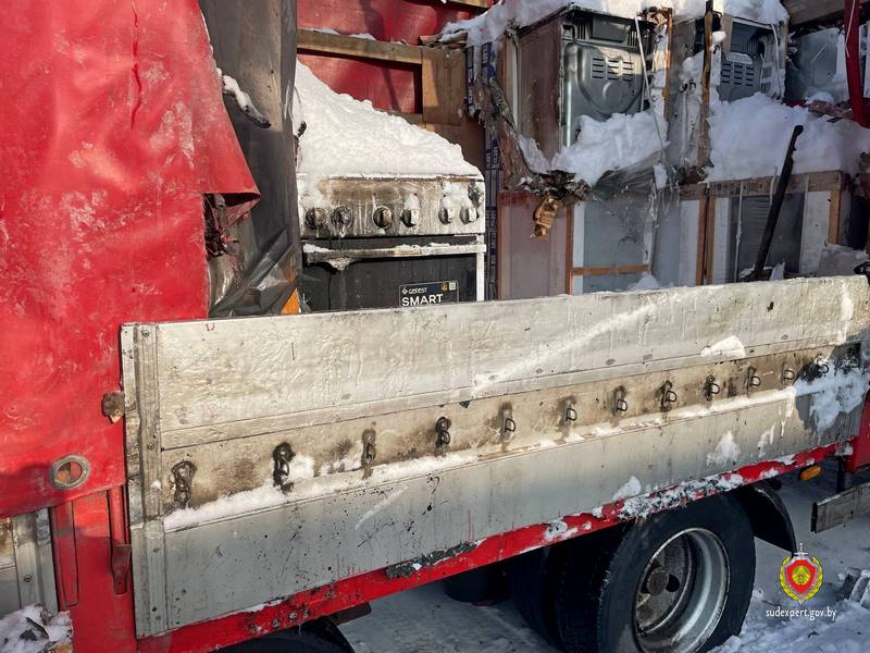 ЧП произошло еще 5 января. Автопоезд (тентованный грузовик с прицепом) ехал по дороге М-10 Граница России – Гомель – Кобрин в направлении Гомеля. Тентовый бортовой прицеп, в котором перевозилась бытовая техника, загорелся на ходу. Водитель заметил огонь и остановился.