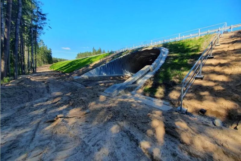 — На 30-километровом участке, которым занимаемся сейчас, впервые будут надстроены мосты с переходами под ними для парнокопытных животных. На протяжении 38 км в местах, где дорога пересекает лес, необходимо установить ограждения-сетки, чтобы лоси, косули и олени не выбегали внезапно на проезжую часть. Если обитатели леса набредут на такое ограждение, они будут идти вдоль него до того самого перехода. Это своеобразный мост, который возводится над землей, а под ним будет просторный тоннель, где парнокопытные без вреда для себя смогут пройти под автодорогой. Такое сооружение хоть и затратное, но, во-первых, очень удобное для животных и, во-вторых, безопасное для водителей.