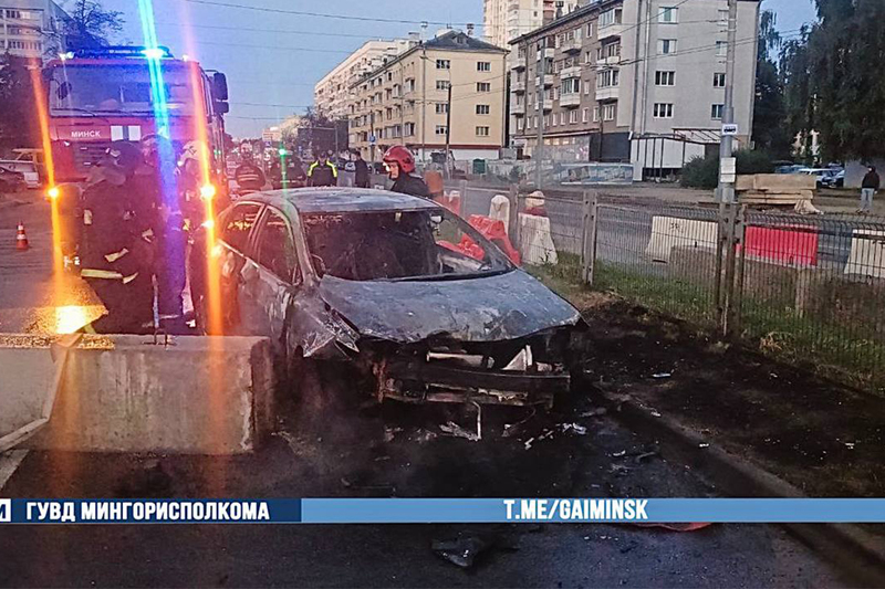 Сообщается, что сегодня утром на улице Богдановича в Минске произошло дорожно-транспортное происшествие с участием автомобиля Toyota". По предварительным данным, 22-летний водитель не справился с управлением, съехал с дороги и врезался в бетонный блок. От сильного удара машина загорелась. Есть предположение, что причиной аварии стало то, что водитель уснул за рулем.