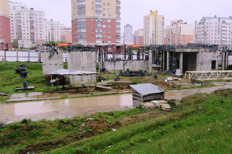 В настоящее время здесь выполняются работы по устройству основания под полы цокольного этажа, заливке колонн и перекрытий цокольного, первого и второго этажей, а также въездной и выездной рамп паркинга. Ведется подготовка к кладочным работам на возведенных этажах.
