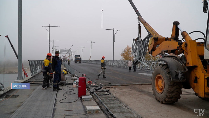 В Мозыре близится к завершению реконструкция моста через Припять, который был построен в 1958 году. Blizko.by рассказывал: ремонтировать мост решили еще осенью 2023-го, в ноябре он и закрылся для проезда. А в январе при разборке старого моста часть пролета «уехала», придавив подъемный кран.