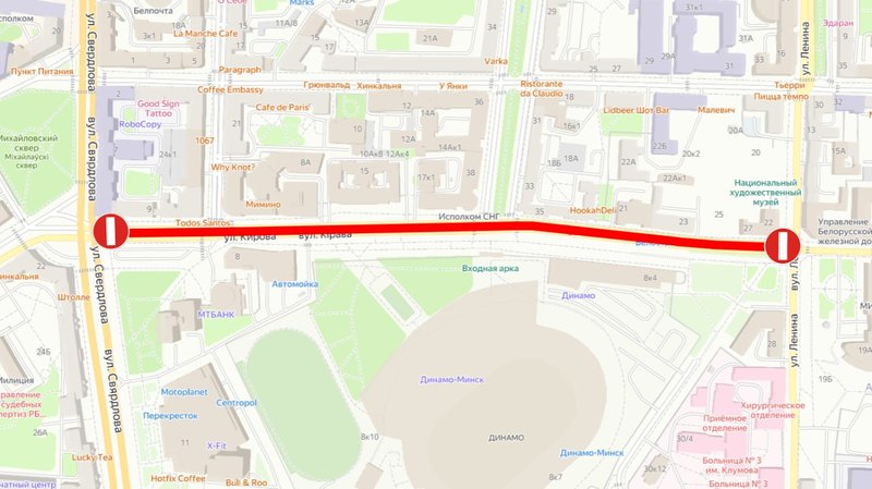 Движение всех видов транспортных средств временно ограничат по улице Кирова в Минске в связи с проведением массового мероприятия. Об этом предупредили в столичной Госавтоинспекции.