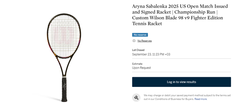 Не менее востребованной оказалась и ракетка Wilson Blade 98 v9 Fighter Edition, которая ушла с молотка за 3810 долларов.