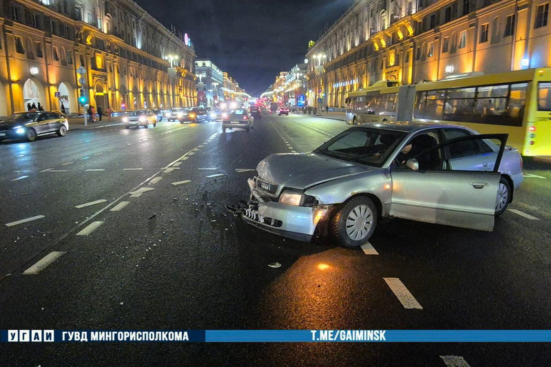 Вечером пятницы 12 декабря 25-летний водитель автомобиля BMW, двигаясь по проспекту Независимости, по предварительной информации, выехал на перекресток с улицей Энгельса на красный сигнал светофора и совершил столкновение с автомобилем Audi.