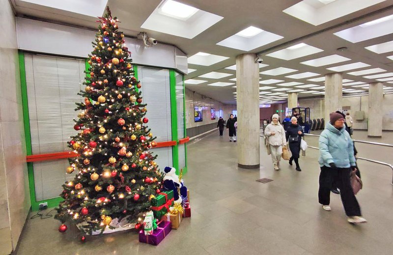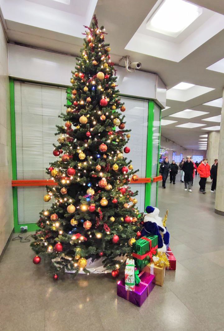 У входа на станцию метро «Площадь Ленина» со стороны торгового центра «Столица» появилась новогодняя декорация — праздничная елочка. Об этом рассказали в телеграм-канале подземки.