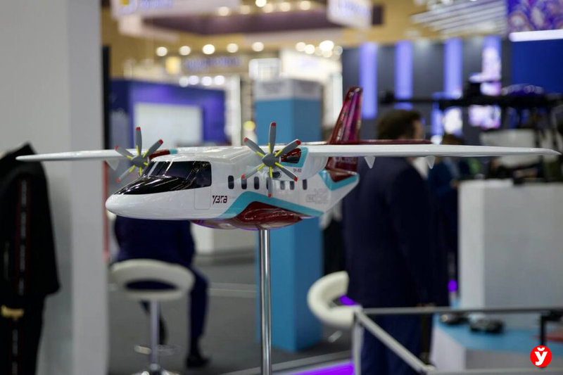 На выставке «Иннопром» в Минске показали макет самолета, которые планируются выпускать в Беларуси, подметило издание Mlyn.by.