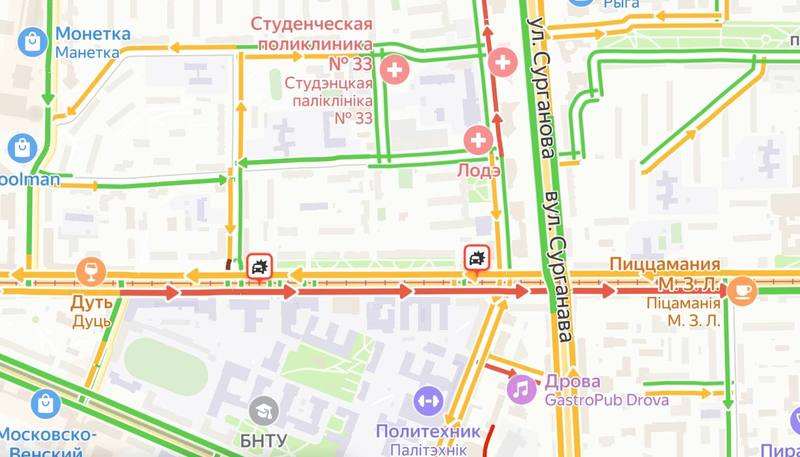 Из-за ДТП вблизи дома №26 по улице Якуба Коласа затруднено движение общественного транспорта со стороны улицы Сурганова. Об этом сообщает УГАИ ГУВД Мингорисполкома. И приводит схему.