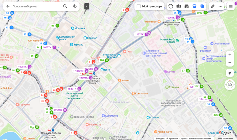Теперь на «Яндекс.Картах» в режиме реального времени можно отслеживать вообще весь назменый общественный транспорт Минска (электрички не в счет). Blizko.by уже подробно рассказывал, как смотреть за автобусами-троллейбусами на карте. А теперь к ним подключились еще и маршрутки.
