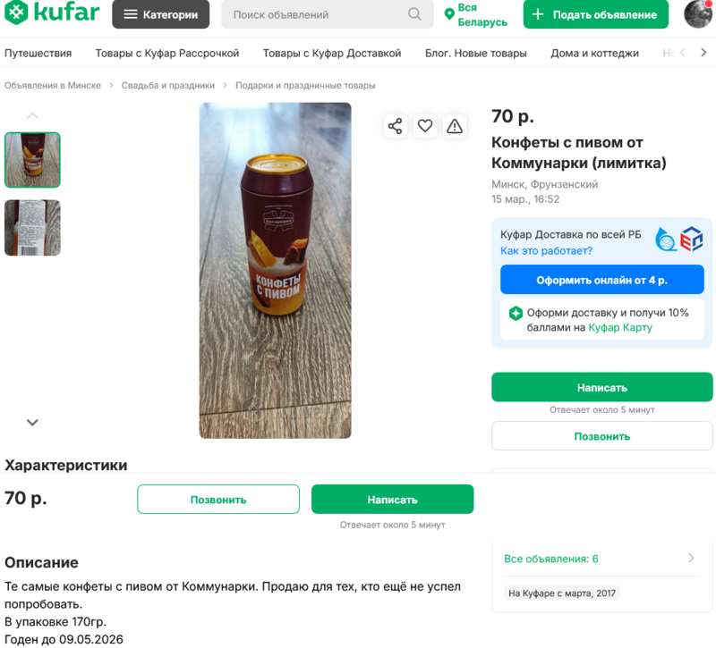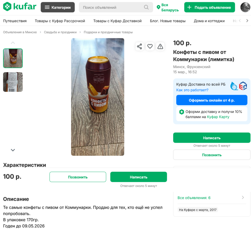 Месяц назад Blizko.by провел дегустацию пивных конфет от «Коммунарки», которые вызвали большой резонанс в соцсетях. А теперь оказалось, что на «Куфаре» эти же конфеты перепродают в 7 раз дороже.