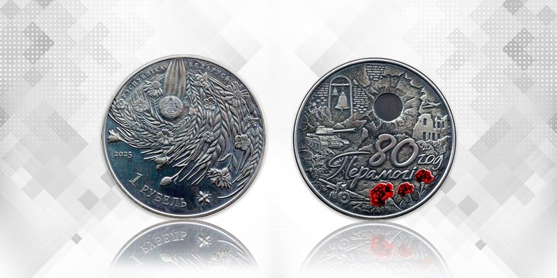 С 24 июня Нацбанк Беларуси начнет реализацию памятных монет достоинством в 1 рубль. Это ограниченная серия монет «80 год Перамогі савецкага народа ў Вялікай Айчыннай вайне».