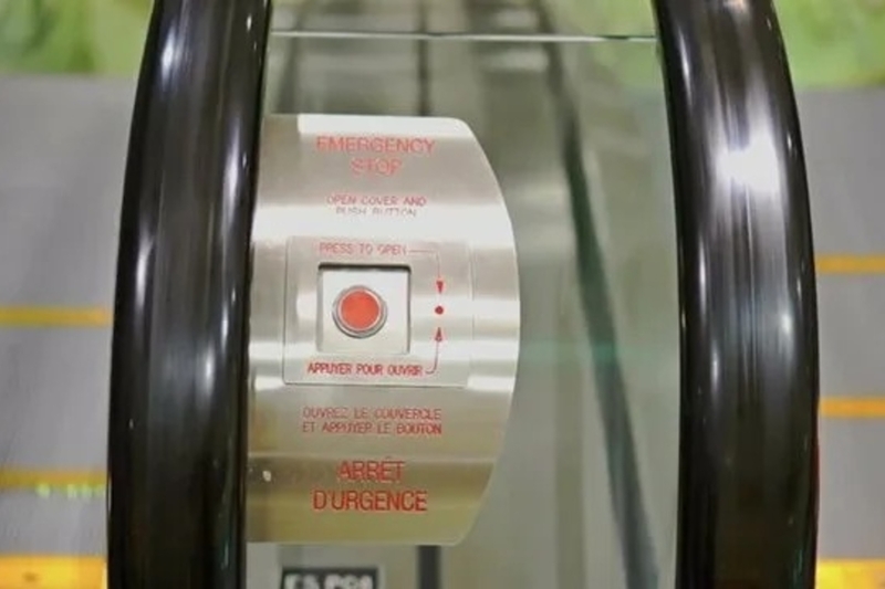 Выключатели «Стоп» в виде кнопки или переключателя находятся в верхней и нижней частях балюстрады (ограждающей конструкции) эскалатора с обеих сторон.