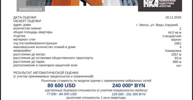 ИИ-сервис по оценке квартир в Минске официально ввели в постоянную эксплуатацию. Сервис в течение месяца работал в тестовом режиме и сейчас получил статус постоянного инструмента. Цель его внедрения — повышение прозрачности на рынке недвижимости, подчеркнули в Государственном комитете по имуществу Беларуси.