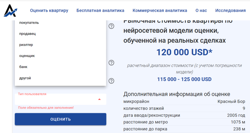 Добавились и новые категории. Теперь получить результат могут не только продавцы и покупатели, а также банк, риелтор, оценщик или другой пользователь. К слову, этот параметр на итоговый результат по стоимости, наличию или отсутствию показателей в отчете не влияет.