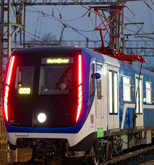 Поезд запечатлен на испытательном полигоне АО "Метровагонмаш" в подмосковном городе Мытищи, где находится производство.