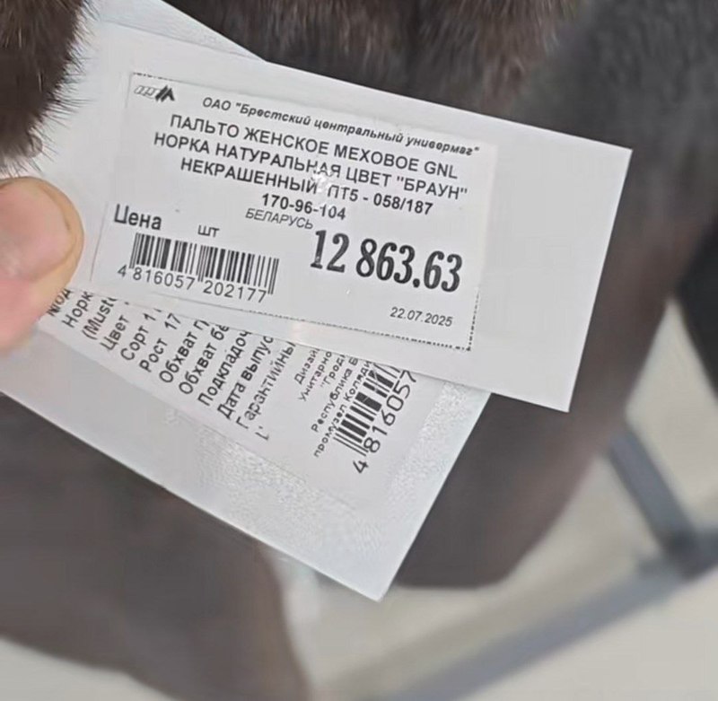 Пользователь шокирован ценой белорусской шубы. Он опубликовал в TikTok ценник из брестского центрального универмага.
