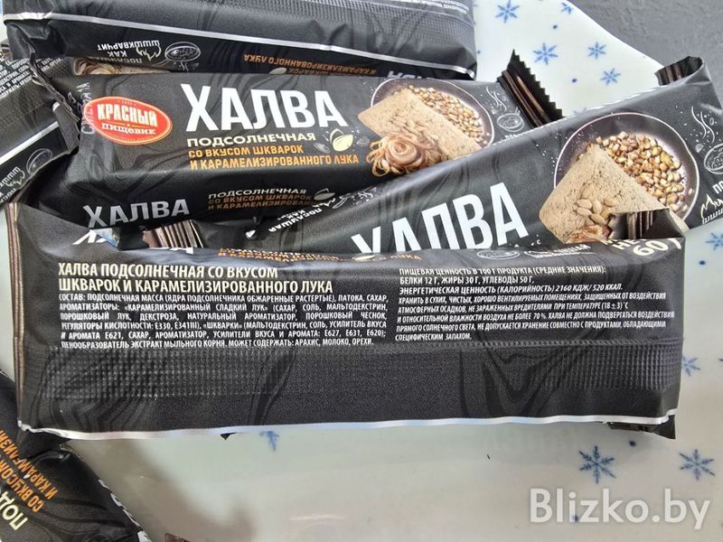 Итак, в «халвичной линейке» от «Красного пищевика» появился новый продукт — на сей раз со вкусом шкварок и карамелизированного лука. И такого в Беларуси еще точно не было. До недавнего времени любители этого вида сладостей могли (и могут до сегодняшнего дня) видеть на полках иную «экзотику». Например, халву с солью, перцем или мятой. Как видим, сейчас у бобруйских технологов родилась новая идея.