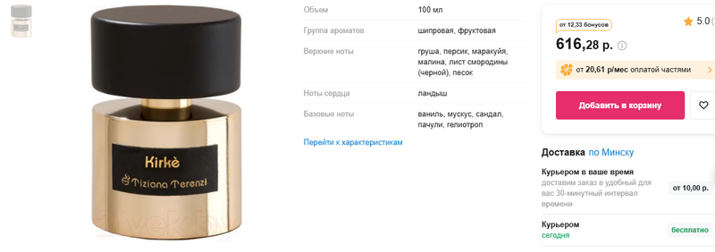 Цена одного «пшика» Kirke tiziana terenzi в «аромомате» — 2,7 рубля.