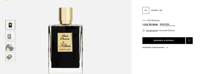 Одно распыление аромата бренда Kilian black phantom в автомате стоит 3,8 рубля.
