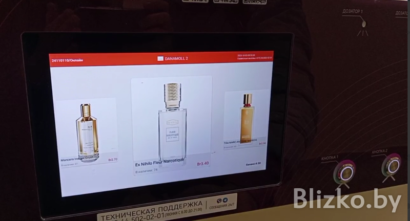 Что по ценам и каким парфюмом «заправлен» парфюмомат? В момент нашего теста цена одного «пшика» из «аромамата» варьировалась от 2,7 до 3, 8 рубля. В ассортименте автомата были представлены известные и элитные парфюмерные бренды. Например Kirke tiziana terenzi, Kilian black phantom, Еx nihilo fleur narcotiqu и другие.