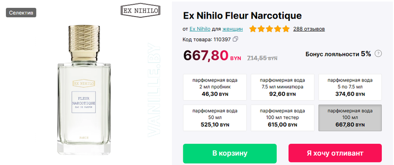 А флакон объемом в 100 миллилитров этого же парфюма можно приобрести за 616, 28 рубля.