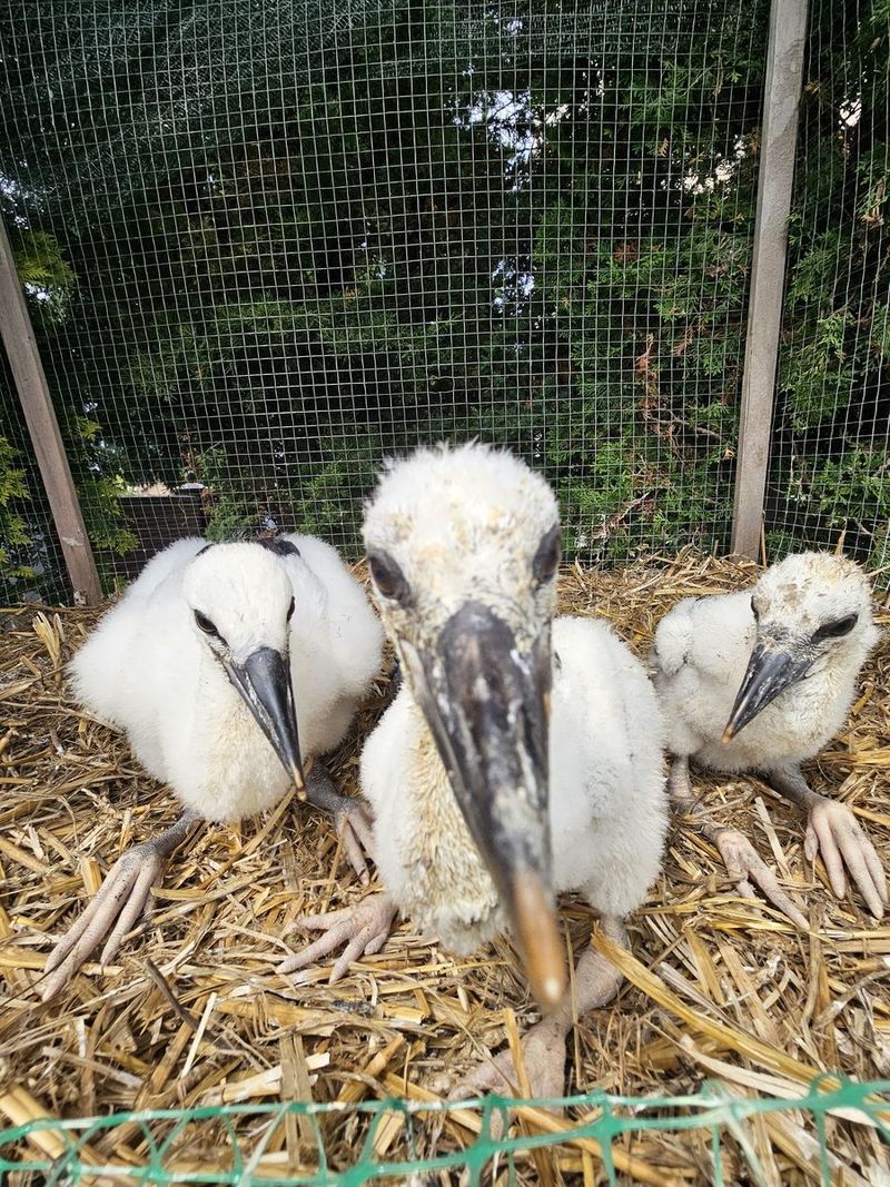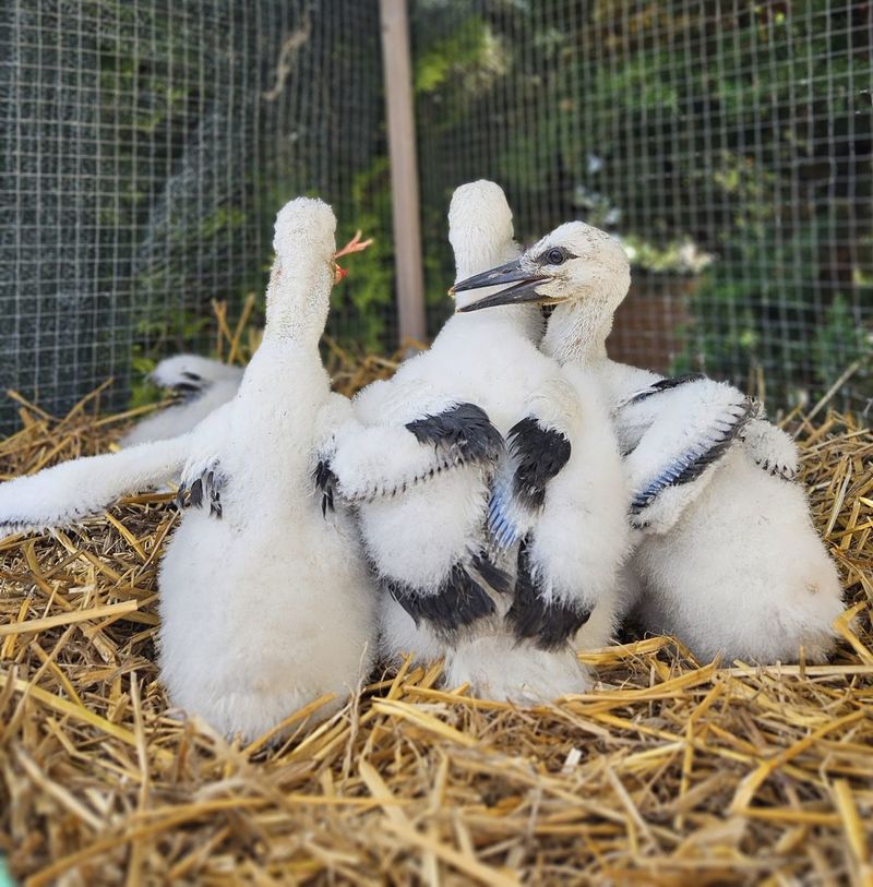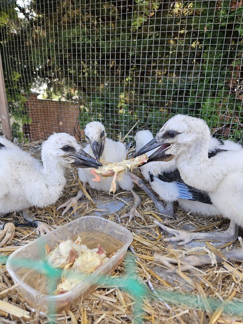 В «Доме Брестского Аиста» птенцов-последышей растят в специальных вольерах с дикими сородичами, чтобы они минимально контактировали с человеком.