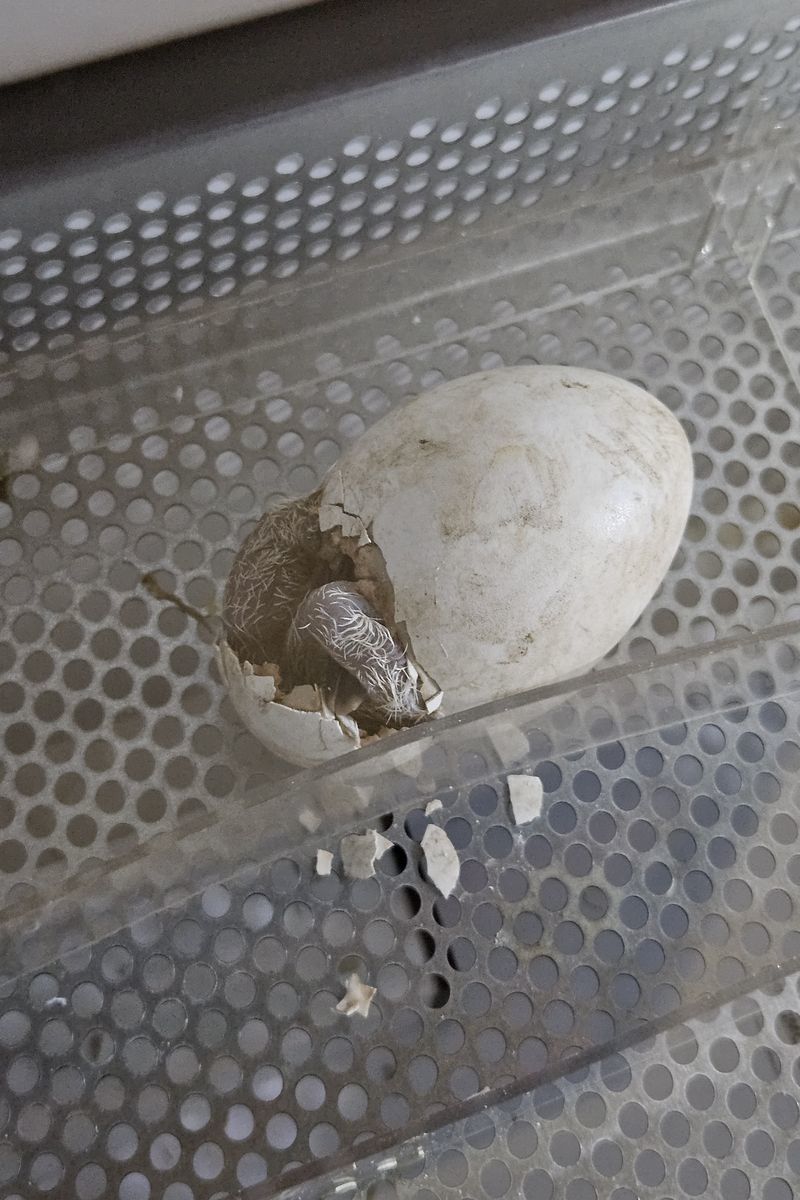 Яйца, оставшиеся в гнезде, подменили на куриные. Самец честно высиживал их несколько дней, но на четвертые сутки инстинкт взял верх, и птица улетела добывать корм.