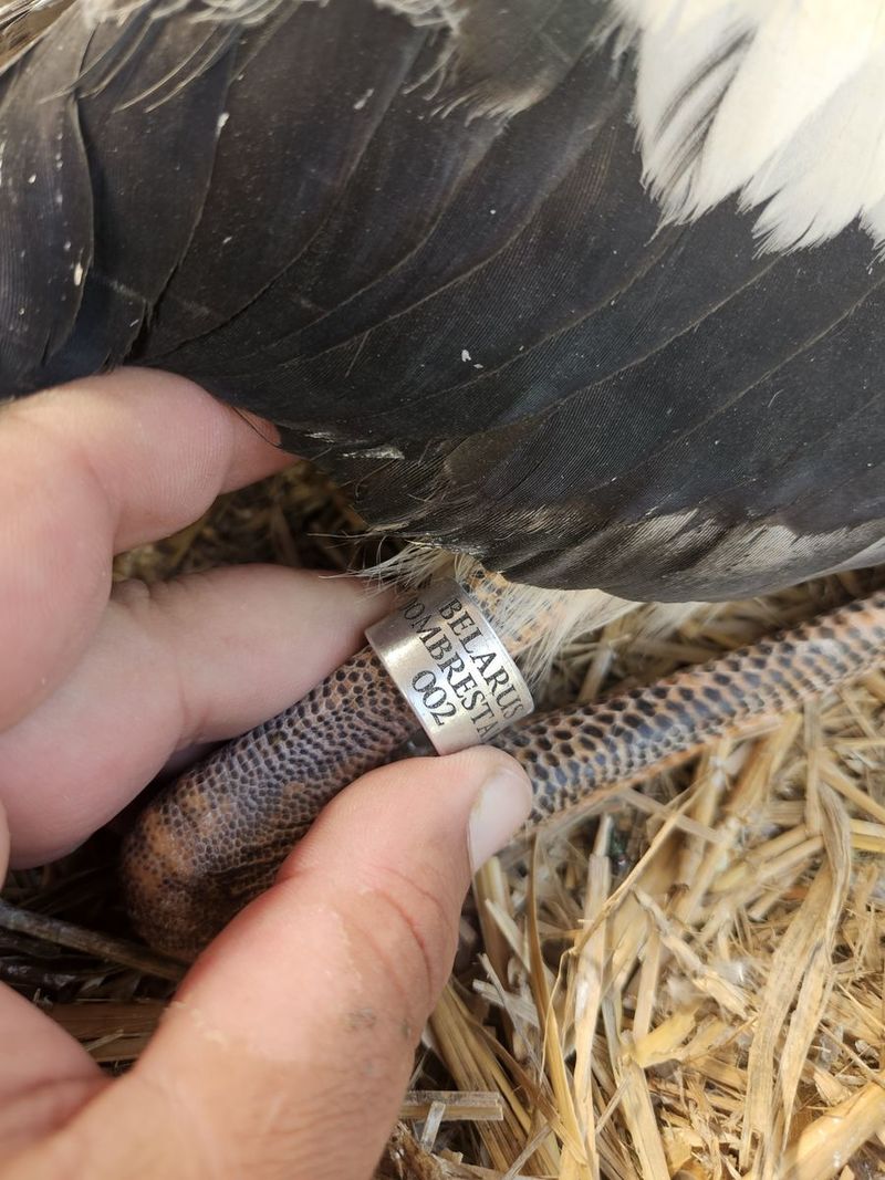 — Сейчас в Беларуси часто можно увидеть немецких аистов, которые создают здесь пары. То ли им очень нравятся белорусские красавицы. То ли секрет в том, что в Германии активно «кольцуют» своих особей. Мы также получили разрешение у Республиканского центра кольцевания птиц на работу с буслами. Уже заказали изделия в Польше и ждем, когда они будут готовы. По евростандартам, белорусским птицам положены пластиковые образцы зеленого цвета с заглавной буквой Е. Они заметны издалека, так что сильно не приближаясь к птице, можно будет на расстоянии определить отечественную особь. А вот посмертное кольцо – небольшое, металлическое — как правило, можно разглядеть только на мертвой птице.