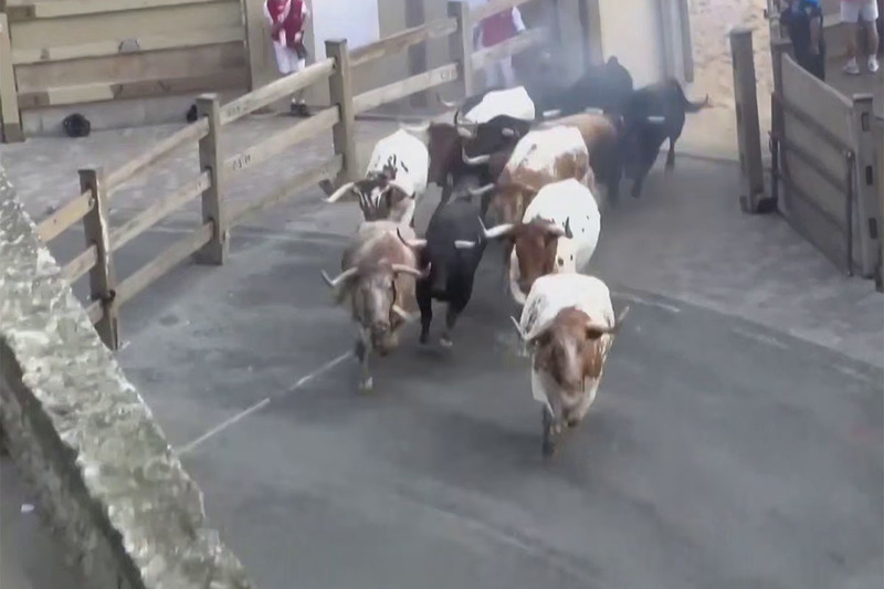 Забег начался в 08:00 по местному времени и длился около трёх минут. За это время сотни смельчаков, рискуя здоровьем, бежали по узким улочкам, спасаясь от преследующих их быков. Для некоторых участников испытание становится не просто спортивной традицией, а настоящим вызовом — они сознательно держат минимальную дистанцию до животных, чтобы испытать адреналин.