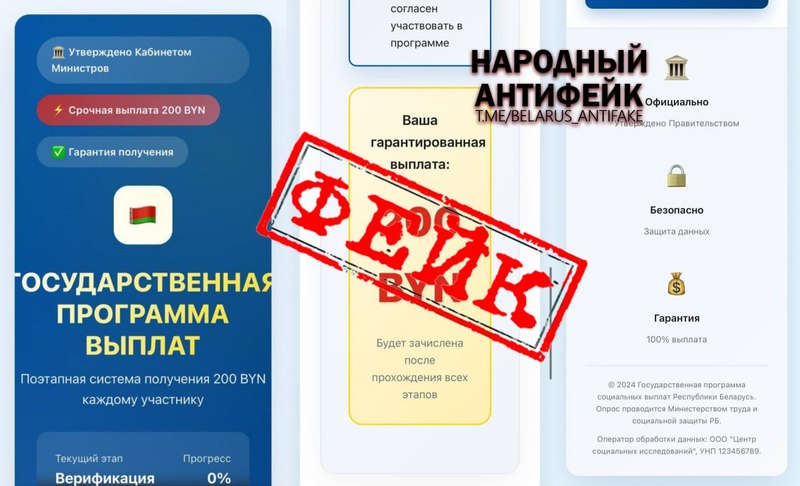 В объявлении аферисты обещают выплатить 200 рублей за прохождение некого «простого» опроса. При этом необходимо верифицироваться и ввести личные данные, но пользователей успокаивают, что все легально — программа одобрена Советом министров Беларуси.