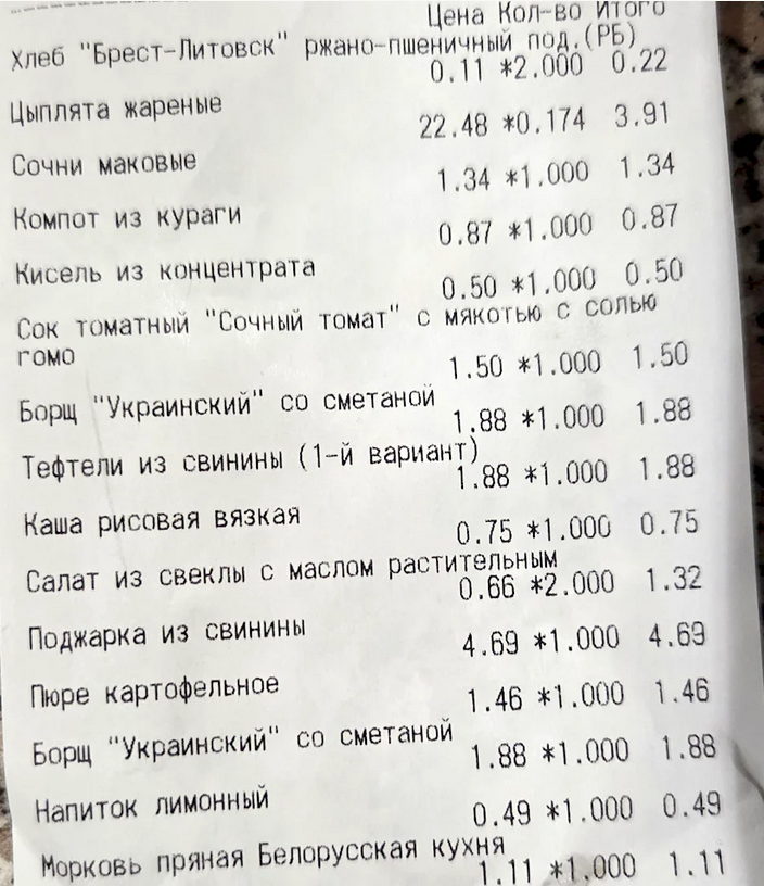 В сети завирусилась история с очень приятным чеком из столовой предприятия «Гефест-техника» в Бресте.