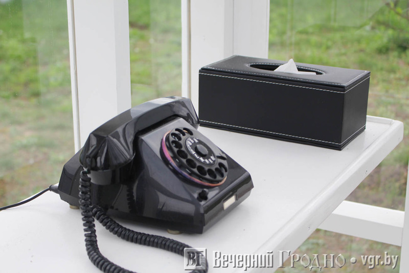 Внутри будки стул, распятие, блокнот для памятных посланий и салфетки. Телефон не подключен к сети. По такому телефону человек может сказать те слова, что не успел сказать умершему родственнику или другу.