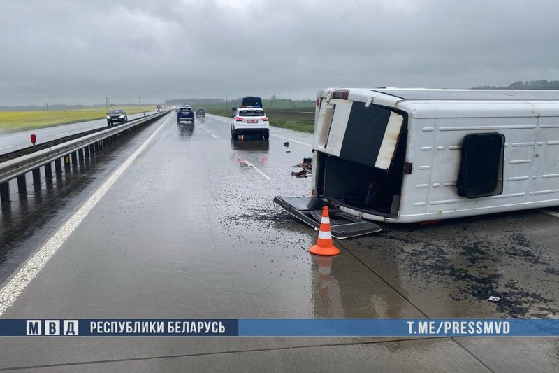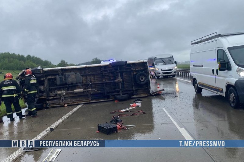МВД сообщает: вчера вечером около 17:20 в Смолевичском районе перевернулась маршрутка с пассажирами.